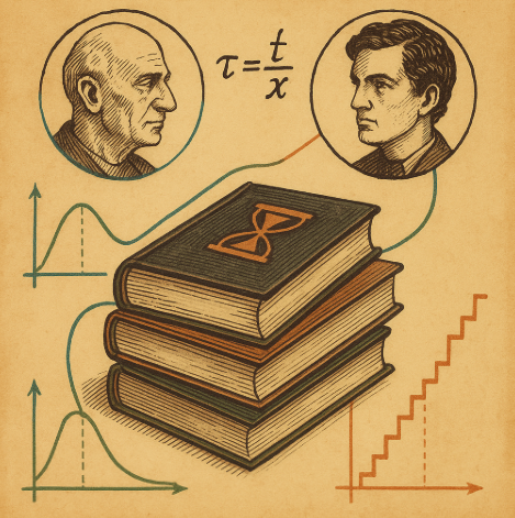 * Curvas suaves: narración lineal o cíclica. * Escalera ascendente: configuración temporal, paso a paso, como describe Ricœur. * Fórmula τ = t/x: puede aludir a una relación tiempo/experiencia, sugiriendo que el tiempo narrado no es igual al tiempo vivido (distensión interna del alma, en Agustín).